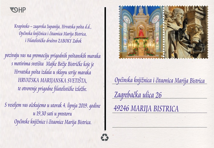 U Općinskoj knjižnici i čitaonici Marija Bistrica u utorak 4. lipnja je na rasporedu vrlo zanimljivo filatelističko događanje. Naime, Općinska knjižnica i čitaonica Marija Bistrica