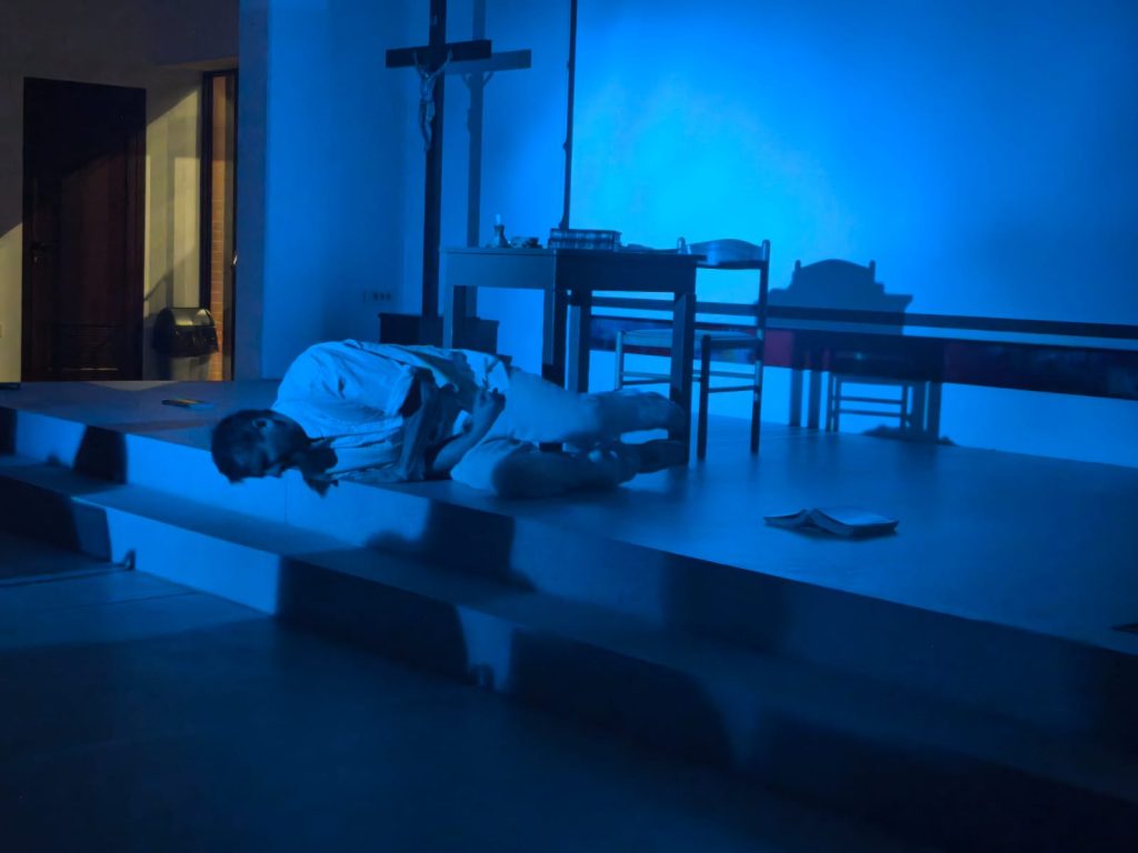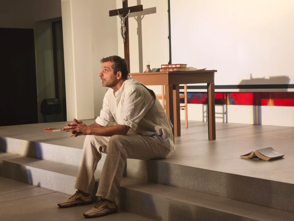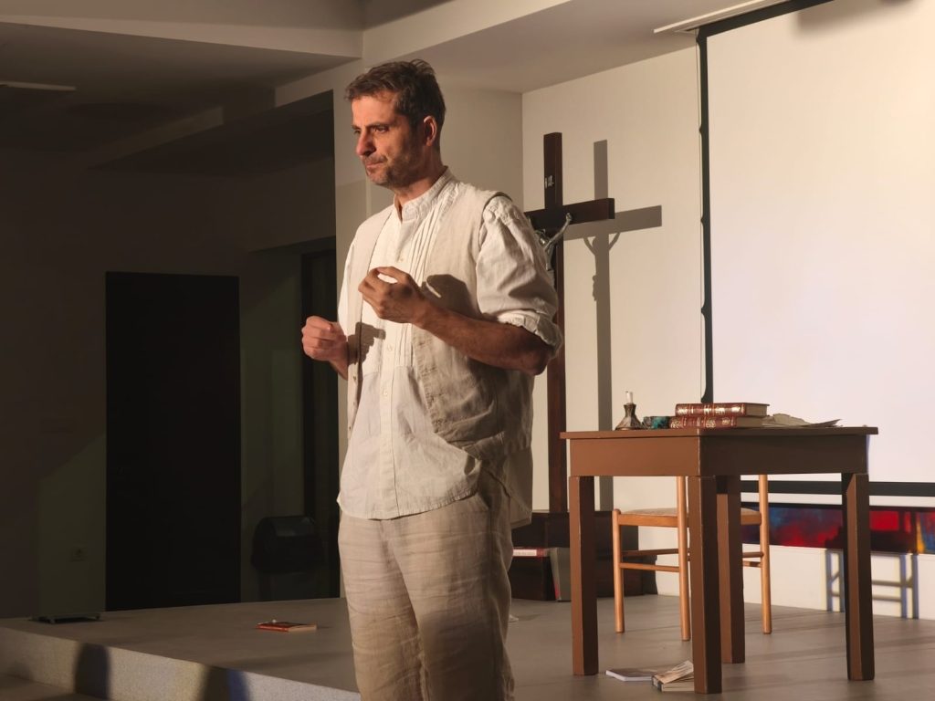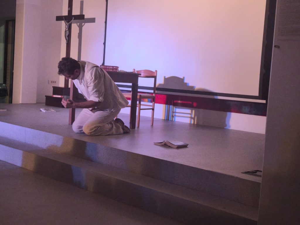 U Dvorani Božjeg milosrđa u Svetištu MBB-e u petak je na rasporedu bila Monodrama prema prozi Tina Ujevića u izvedbi Roberta Kurbaše ”Ispit savjesti”. Monodrama ”Ispit savjesti” dio je autorskog projekta glumca Roberta Kurbaše, koji uz to što se pojavljuje na sceni, potpisuje scensku prilagodbu i režiju. Kralježnica predstave je istoimeni esej Tina Ujevića oko kojega je Kurbaša vješto isprepleo druge Ujevićeve prozne tekstove pa se na sceni, u obraćanju samome sebi, ali istodobno i publici, dotiče svevremenih tema, tema bliskih i suvremenom čovjeku. Kurbaša postavlja pitanja, ona ista koja je postavljao i Ujević – o moralu, religiji, odnosu žene i muškarca, prijateljstvu, iluzijama i stvarnosti, tražeći odgovore na izazove vlastite savjesti. Ova je predstava borba sa samim sobom, dijalog s vlastitom savješću – ispit savjesti koji glumca, ali i gledatelja vodi do katarze.