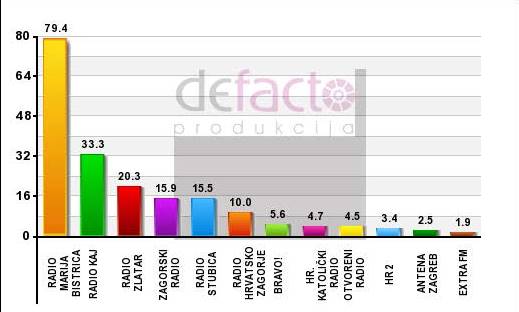 Prema istraživanju slušanosti za prvi kvartal 2025. godine, Radio Marija Bistrica i dalje je najslušaniji radio u Mariji Bistrici i petu u KZŽ. slušanost za