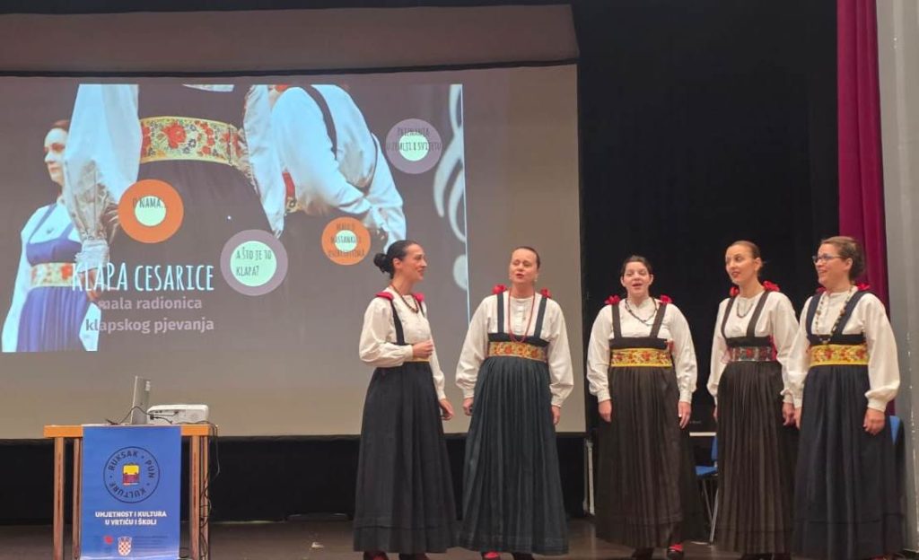 U sklopu vrijednog projekta Ministarstva kulture i medija Republike Hrvatske ”Ruksak pun kulture”, Glazbena škola pri OŠ Marija Bistrica imala je čast ugostiti poznatu žensku klapu ”Cesarice”, čije su članice održale edukativni koncert, prezentaciju i interaktivnu radionicu tradicijskog pjevanja za učenike škole. Poseban naglasak bio je na dječjoj radionici, tijekom koje su učenici, uz stručno vodstvo članica klape, istraživali ljepotu i bogatstvo hrvatskog tradicijskog pjevanja, učili o tehnikama disanja, višeglasju, slušanju i zajedničkom muziciranju te aktivno sudjelovali u izvođenju pjesama. Radionica je protekla u veseloj, poticajnoj i inspirativnoj atmosferi, ispunjena radošću, glazbom i zajedništvom. ”Ovakvi susreti pružaju mladima neprocjenjivo iskustvo živog susreta s glazbom i tradicijom, potiču ih na kreativnost, izražavanje i očuvanje kulturne baštine. Zahvaljujemo Ministarstvu kulture i medija Republike Hrvatske na podršci i mogućnosti da učenici dožive ovako vrijedno iskustvo, te klapi Cesarice na njihovom stručnom, toplom i motivirajućem pristupu koji je učenike istinski nadahnuo. Dan ispunjen pjesmom, učenjem i osmijesima – potvrda da glazba i tradicija žive kroz nove generacije”. – rekli su u školi.